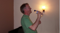 The number one problem situation for most smartphone cameras today, low light and moving human subjects, whether kids in a living room or friends down the pub or at a party. The ultimate test of Xenon flash and camera quality - I've made it harder than I usually do here by shooting from 3.5 metres away, with 2x zoom. In other words, imagine you're at an evening event and you want to snap a friend on the next table or in the next group. They're (as I was here) moving, laughing and there's no concept of posing. There's zero chance of getting a good shot with an iPhone or normal Android smartphone etc - the zoom and the flash requirements rule this out. Here are the two shots recorded by the Nokia 808 PureView (left) and Samsung Galaxy S4 Zoom (middle), followed by a comparison shot from the Nokia N9 (here representing the 'normal' smartphone camera with LED flash). Click on any to download the full JPG, if you're interested: