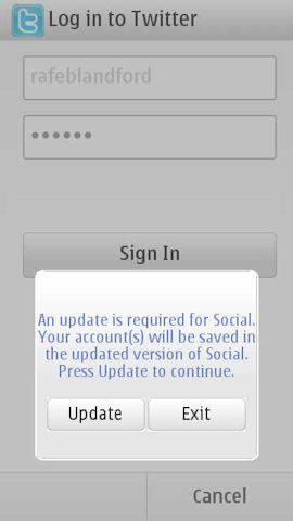 The Twitter module of Nokia Social has been updated and now supports retweeting via the context sensitive menu. It's good to see this addition, which means Social now has all the basic Twitter functionality and should be sufficient for light users. Power users will likely remain with Gravity.