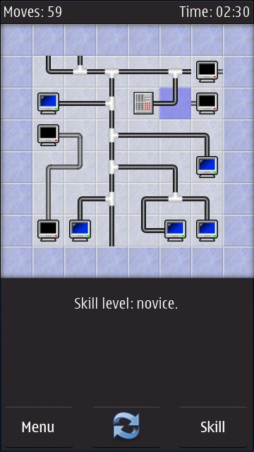 The gameplay mechanic here is to tap on a tile to rotate its ethernet connections by 90 degrees clockwise - the idea then being to line up all the ethernet wires so that the central server can provide a connection to all the terminals. Sounds easy, but the levels are fiendishly designed and what seems to be the obvious cable routing is rarely the one used in the solution, meaning that you'll be tapping away trying different combinations and applying some very 'Minesweeper-ish' logic to work out what has to go where.