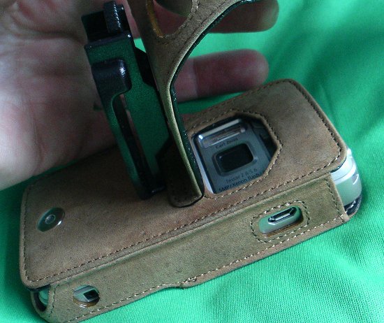 Ah, the famous Vertica (used to be called the 'Verticalic'). It's been home to my N93, my E70 and many others in its lifetime. It's a simple leather holster and is shown as N82-compatible on the Krusell web site. Unfortunately it's simply too large - or rather the N82's too thin, and ends up rattling around...