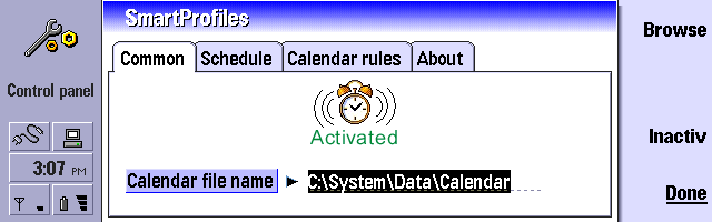 This sort of magic is all the work of SmartProfiles, which installs itself in your communicator’s Control panel. You can combine scheduled profile adjustments (i.e. at a certain time) with calendar-based ones. In this case, you simply tell SmartProfiles which keywords to look out for (e.g. ‘Meeting’ or ‘Service’) and which profiles you’d like to use and it does the rest.