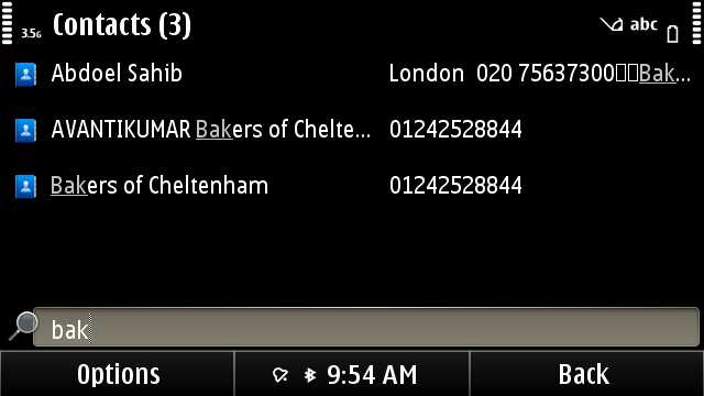 The quick match search in Contacts is now meant for just that - quick matching names in the appropriate fields. Yes, Tomi, I know that searching on Contacts worked in all fields back on the Psion 3c in 1996 - I used to use it too. But the way the application and its descendents work has changed in the intervening 15 years. The current system just works... differently.