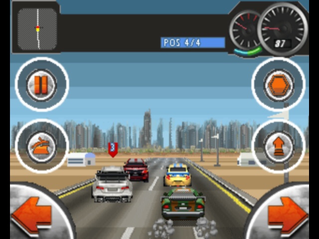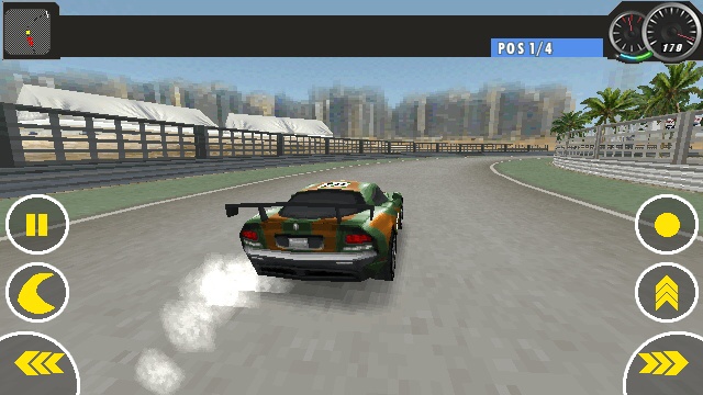 Need for Speed Shift (not to be confused with the HD version) is unusual among contemporary driving simulators. Rather than being controlled by tilting the phone, it has on-screen buttons for steering and breaking.