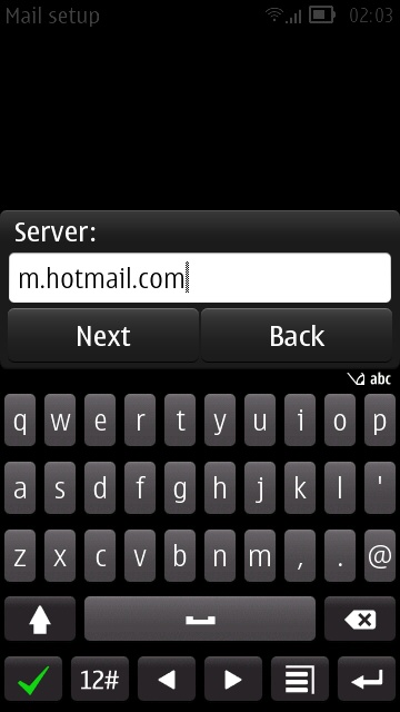 - Enter m.hotmail.com as the server URL, when prompted