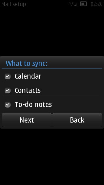 Fortunately, Memotoo also supports synchronization via Mail for Exchange. Therefore, Memotoo can act as an intermediary two-way synchronization agent between your Symbian device and Yahoo! Configure your phone with the following steps: