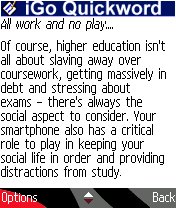 There’s a world of software out there for students and the majority can find something suited to the course they are doing (unless it’s something very obscure – as yet there isn’t a Klingon – English dictionary for Series 60, but I’m sure it’s only a matter of time...) With this in mind, the next time your tutor complains about your Sendo or Nokia going off in class, just explain that it’s all in a good cause….