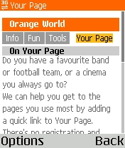 Orange has a range of applications and service bundled with the N70, some of which I have mentioned above, but the most significant is the Orange World Portal which is used to provide information, entertainment and content to the device. There are plenty of video and other media downloads as you would expect, and a good range of Java games, but the most useful are the information services ranging from news to travel to entertainment. Orange have done a fairly comprehensive job, and for many there'll never be a need to leave the portal for generic information. This would be a shame as there's an ever increasing amount of information available via mobile sites, which as you would expect is more comprehensive than that provided on the Orange portal. Each person will find their own favourites, but I'm a regular user of BBC News and various Google and Yahoo Mobile services.