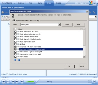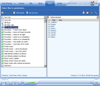 Once you’ve got a sync list sorted, you can hit either of the sync buttons to start the transfer of music over the USB cable - you could use Bluetoooth but it's painfully slow! There’s also an option to automatically sync new music or unlistened tracks to the N91 whenever it’s connected. It does work, there’s a rules system that you build with dialogs and real world English, but to be honest you‘ll know yourself when you need a new album on the device, and can use the manual sync list as described.
