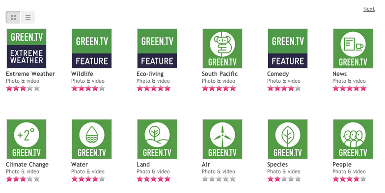 Here's the first page of Green.tv results - definitely something for everybody, with typical video lengths of just a few minutes and half a dozen videos per 'application'. Nicely done all round and it all helps to raise awareness of important issues: