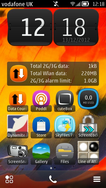 The widget is in the old four by one block style that we've seen since the N97. However, it takes advantage of the size to show you your cellular data usage, WiFi usage, and your mobile data limit. The application doesn't display any data, but there are menu options to change your mobile data limit and to reset your counters.