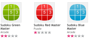 In the Nokia Store then, there's Sudoku Blue Master, Sudoku Green Master and Sudoku Red Master, all priced at £1.