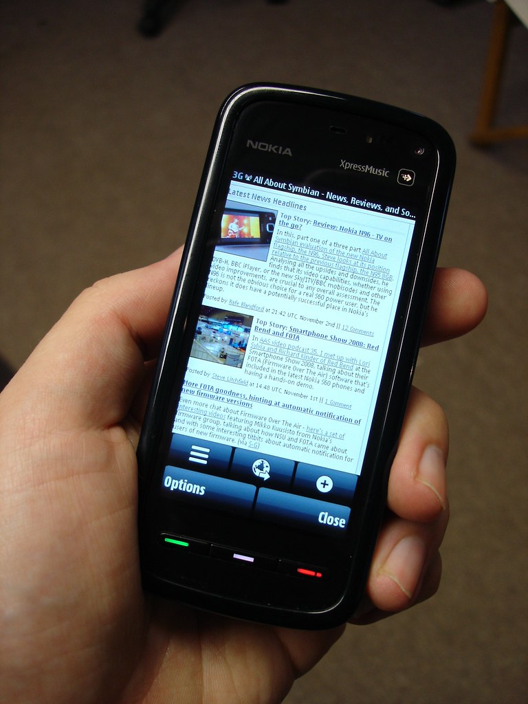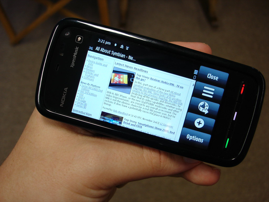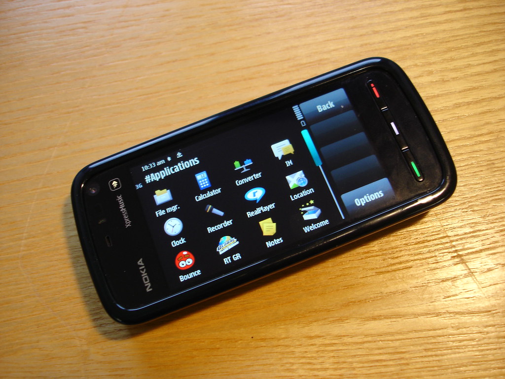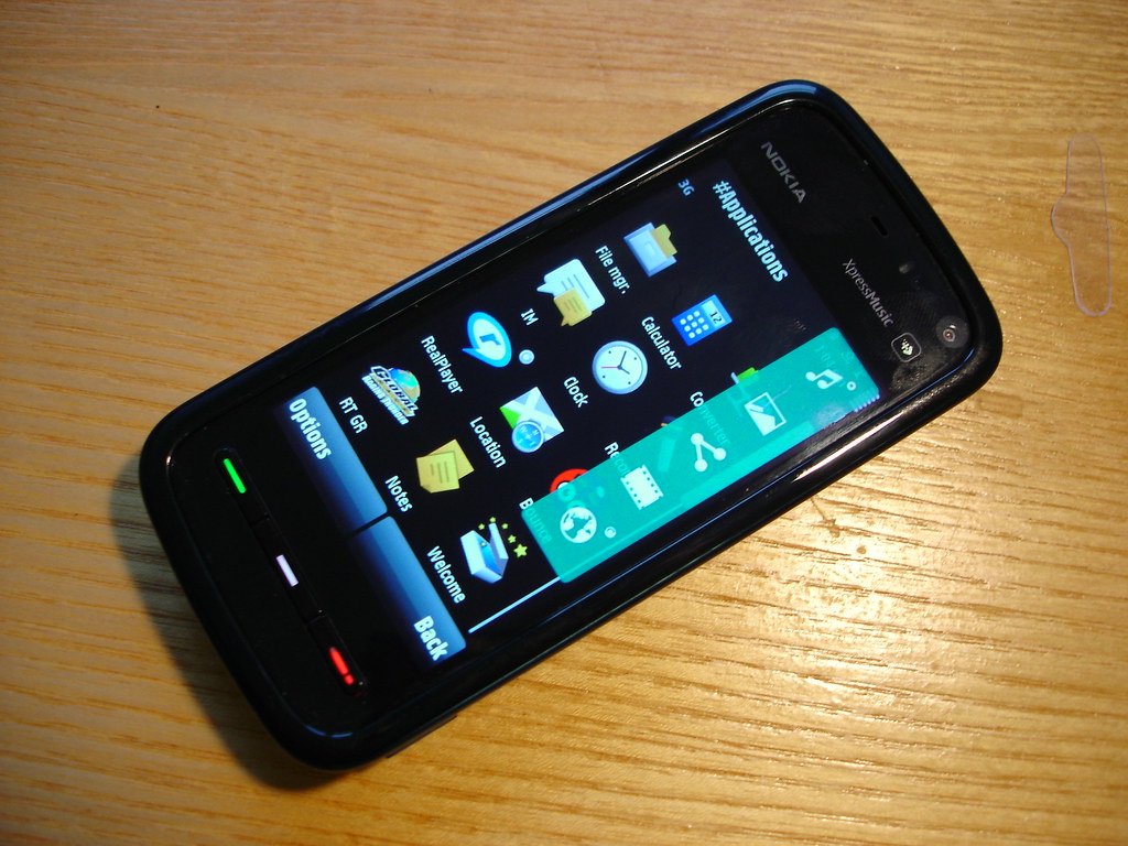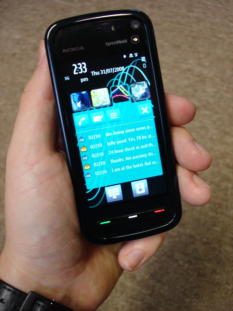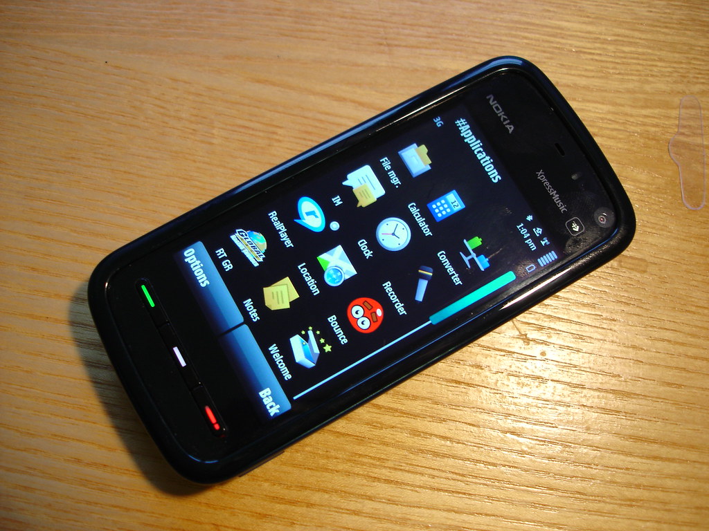 The Nokia 5800 XpressMusic (also known as Tube) is Nokia's first S60 touch enabled phone. It is a mid-range, music focused phone, running S60 5th Edition on Symbian OS 9.2, with a 3.2 megapixel camera, integrated GPS, WiFi and HSDPA connectivity, and a 3.2 inch touch screen. These photos come from a pre-production model.