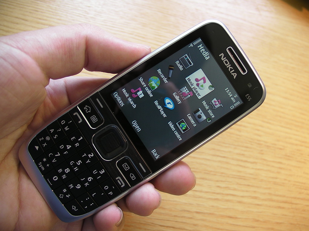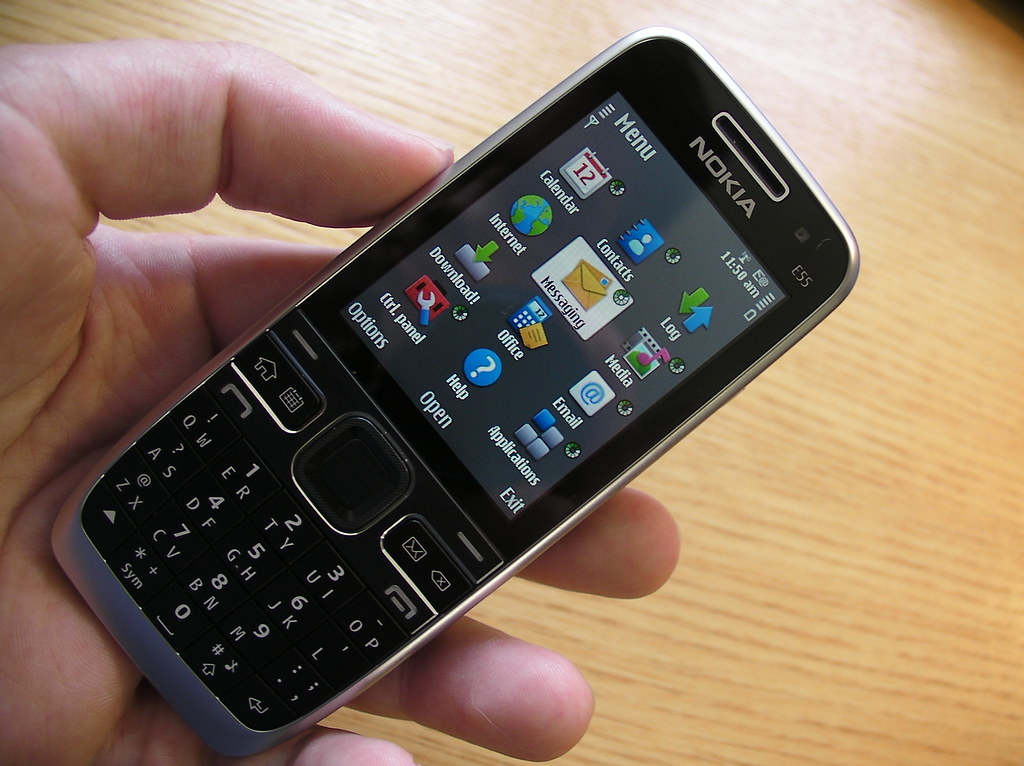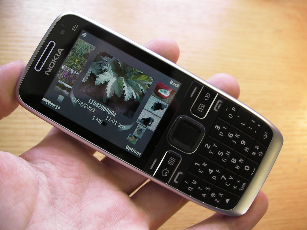 The Nokia E55 is Nokia's first half QWERTY keyboard phone; it's also one of its slimmest. This Eseries Symbian device features include a GPS with integrated compass, 3.2 megapixel EDoF camera, WiFi and Bluetooth connectivity. The software includes the full range of Ovi services from Nokia Maps, to Files on Ovi and N-Gage.