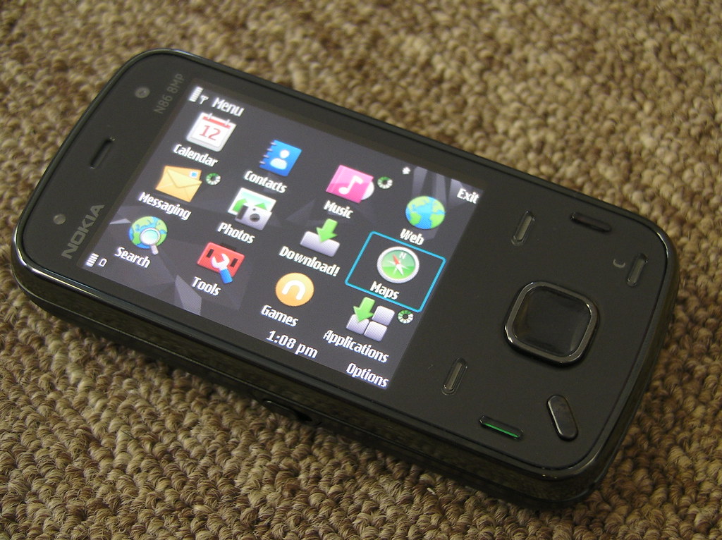 The Nokia N86 8MP is Nokia's first 8MP camera device. Camera features include wide angle Carl Zeiss lens and optics, variable aperture, mechanical shutter and motion-blur reduction. There's 8GB on on board memory, integrated GPS and the Ovi suite of services and software. the N86 8MP was announced at MWC 2009.