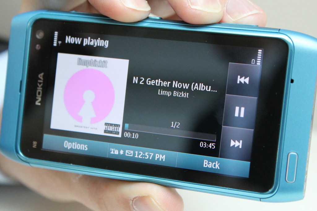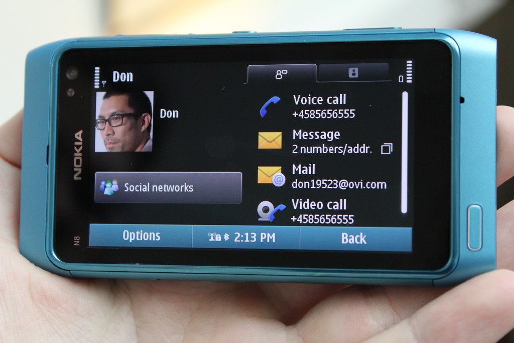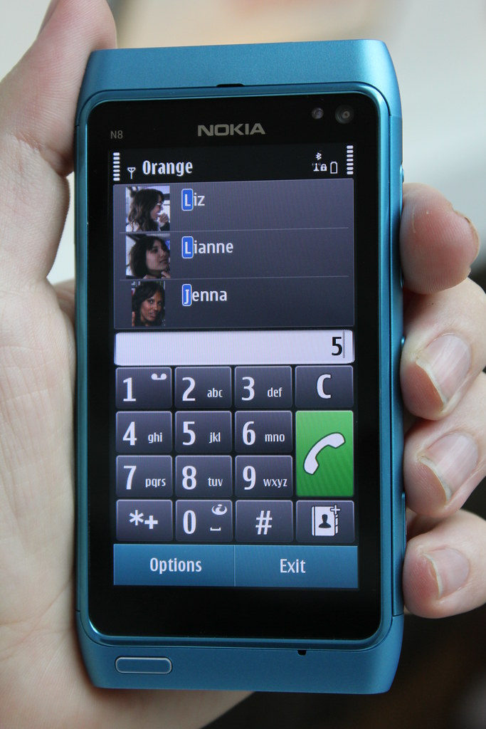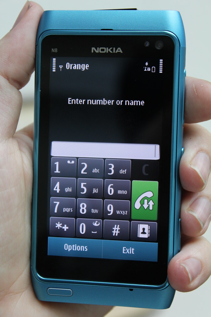 The Nokia N8 is Nokia's first Symbian^3 smartphone. It features a 12 megapixel camera (with video HD recording) with a large sensor and superior Carl Zeiss optics. The device's casing is made mainly from anodised aluminium - it is wrapped in a uni-body style. Other notables features include HDMI out (with Dolby surround sound), USB OTG and a penta-band 3G radio. Symbian^3 also offers a variety of performance and usability improvements.