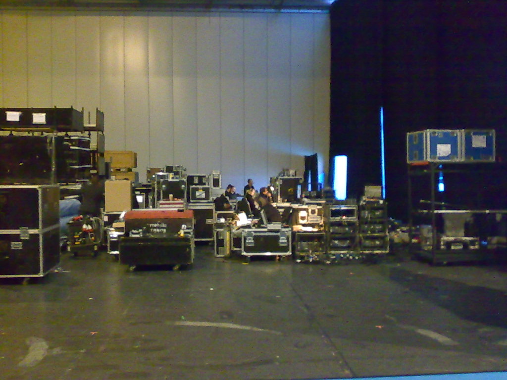 Behind the scenes of the keynote. The backroom boys and dozens of backroom multimedia computers.