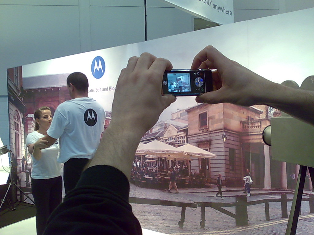 Using the Motorola 'concept' device (Z10) to film performance artists. The Z10 is very much not finished yet, Motorola are demoing their Nseries-like video editing suite, which looked very impressive. Ps. Don't tell Motorola I took this photo!