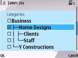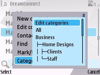 The S60 version of DreamConnect boasts hierarchical sub-categories, giving S60 users the ability to organise their contacts and capture their relationships in a meaningful and realistic way.
