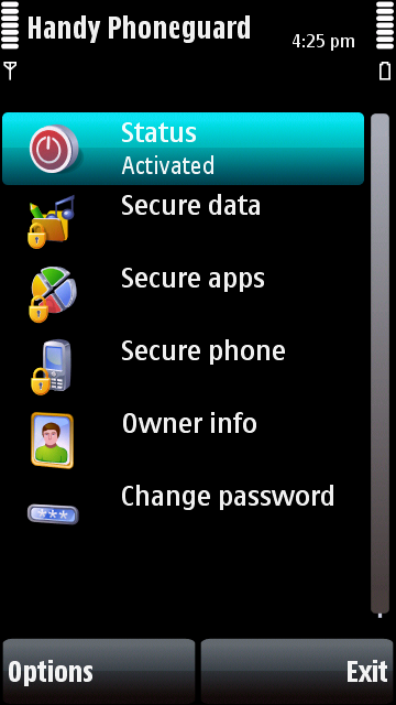 Handy Phoneguard allows users to configure the S60 smartphone to automatically lock after a certain period of time. To eliminate risks of private data unauthorized use, the application stores the chosen folders (Calendar, Contacts, Log, Messages, Photos, etc.) under password protection. Even if the device is missing, Handy Phoneguard will remotely support the smartphone security and ensure the stored data’s safety. The owner can block any access to applications or folders by sending a “LOCK” command, as well as completely wipe the data by texting “WIPE”.