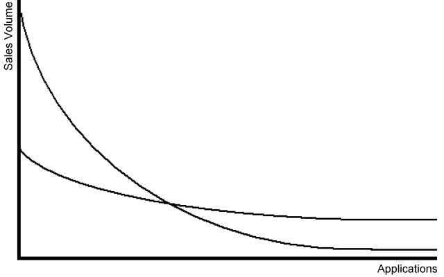 Having a huge volume of applications makes an App Store attractive to the casual user – if there are x thousands of applications then it must be a good phone for me to buy, goes the thinking in the marketing department. But of course the chances of the developer being able to make a good living without a huge stroke of luck from those running the store is very small.