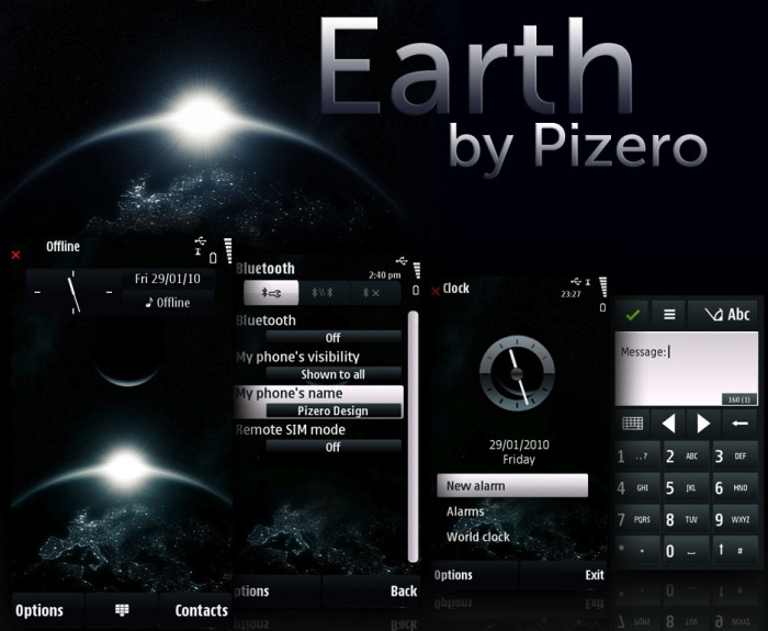 OK, so Steve has a new favourite theme - and it seems that PiZero is experimenting with new ways of distributing his excellent themes: Earth is a new addition to the Nokia Ovi Store and appears for S60 5th Edition (touch) phones only. It's artistic and yet lightweight, with default icons to save RAM. Worth a look - there's a graphical preview below.
