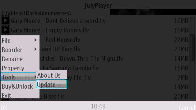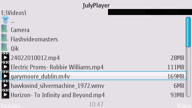 It seems CorePlayer (among other apps) has new competition on S60 - JulyPlayer is now available, in (very) early version 1 form, for both S60 3rd Edition and 5th Edition and claims to play an impressive list of video formats. Trial versions let you test file compatibility and full versions are $10. It's early days though and both the interface and player performance looked like they could do with a lot of feedback from you guys (via their new forums) and subsequent iteration. See below for some screens. Comments welcome if you've tried it yet.