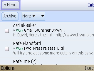 This version of the GMail mobile site was originally developed for the iPhone, but is now also the default view in the Android Dolphin browser too. Interestingly, it offers more functionality than Android's own GMail application. Certainly more than either the basic mobile site or the Java application currently available for Symbian devices.