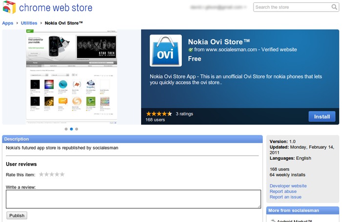 The Unofficial Ovi Store app in Chrome's Web App Store.