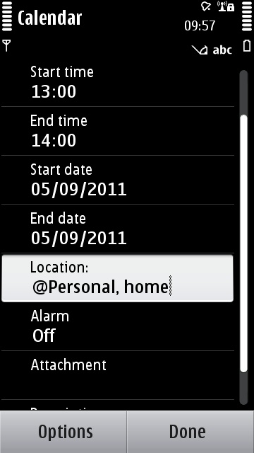 NuevaSync’s latest feature is to map names of a user’s Google calendars to the location field on the Symbian calendar, prefixed with an ‘@’ symbol. When this feature is enabled, users will find that events on their phone will have tags in their location field, such as ‘@Personal’, ‘@Work’, etc., corresponding to whichever calendars they’re synchronising via NuevaSync.