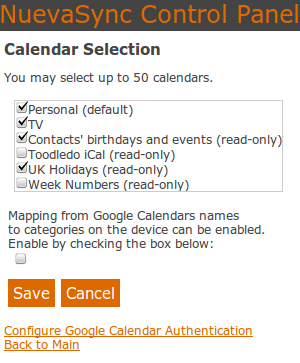 In our review of NuevaSync, we saw that multiple Google Calendars were already supported. This multiple calendar support was limited to selecting which calendars would be synchronised with the local Mail for Exchange calendar on the mobile device. That is, it was a ‘many to one’ synchronisation. Furthermore, any events created on your phone could only be added to the default ‘Personal’ calendar on Google.