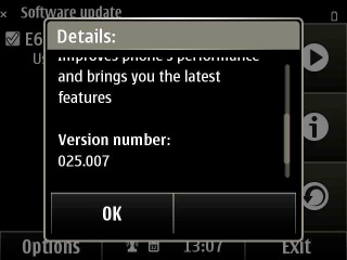 Here's the update being offered on the editorial E6 (a 'UK' device, an example of firmware only being available via Nokia Suite, incidentally):