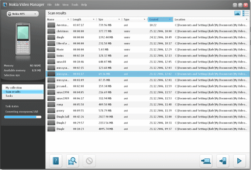 Video Manager can detect a connected Nokia phone and will allow you to directly copy videos to your device. If necessary it will transcode (change the format) the video for optimal playback on the device. You can also covert videos without a phone being connected and store them on your PC ready to copy them to your phone. The software can also play back videos so you can view your videos before they are copied to the phone.
