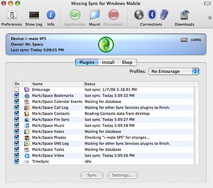 Here is a screenshot from the Windows Mobile version of Missing Sync: