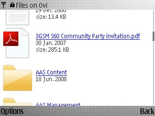 Although branded under to Ovi name Files on Ovi, like Share on Ovi, can be used on a wide variety of devices. There's currently no on-board client software for viewing and downloading files - all you need is access to a web browser - as such it should run on most recent phones.