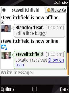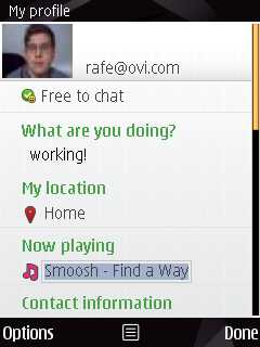 While instant messaging is the most obvious function of Ovi Contacts, it is the presence information which may have more of an impact in the long term. Providing contextual information about what your contacts are currently doing allows you to make more intelligent decisions about when and how to contact them. This is part of the thinking behind social location which Nokia has recently been promoting.