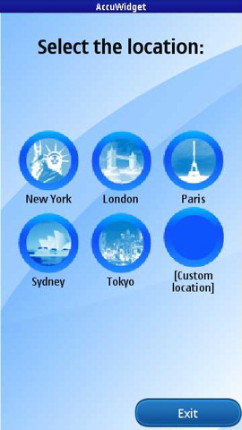 The AccuWidget is a basic weather widget (current conditions and forecast). It uses publicly available RSS feeds and is a good example of how a WRT widget can create a rich client experience for a basic web service. AccuWidget will run on all S60 devices that support WRT.