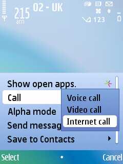 With Truphone WiFi calling the service is made available as an Internet telephone service tab in the Contacts application. An 'Internet call' option is added to all call menus. By default the automatic call type is switched to Internet call (i.e. if you dial a number and press the green call button an 'Internet call' will be made.