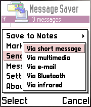 - send selected or all messages as text file via IR/BT, email, SMS or MMS (not available in demo version)
