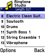 Features:[list][*]Load any Midi song and save in a compressed format to save storage space[*]Change the instruments on any track of the song � choose from up to 128 instruments[*]Mute or change the volume of any track[*]Change the volume of the whole song � manually, or automatically set to maximum[*]Change the speed of the song[*]Automatically trim silence from the start of a song[*]Manually trim the start and end of a song[*]Send ringtones via MMS, IR, Bluetooth and Email[*]Full on-line help[*]Free Trial[/list:u]