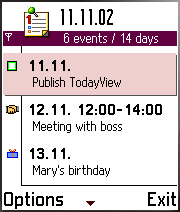 Jari Laaksonen has announced the availability of TodayView via his website. TodayView shows calendar events in a list. A demo is available that shows a single days events. The full version can be purchased via Handango (affiliate link) for $10.
