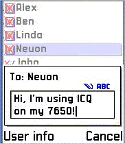 As well as supporting most of the key features of desktop ICQ clients, nICQ has been specially designed to run on a small EPOC device whilst maximising usablitiy.