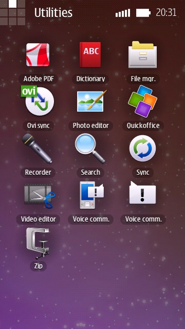 Thanks to the graphics acceleration in Symbian^3, Grid can quickly zoom from a single app-grid screen to the whole three by three super grid of all nine screens. Zooming out is achieved by tapping the miniture grid in the top left corner. That graphic also serves as a map while zoomed in, highlighting the corresponding square to remind you where you are on the super-grid. Oddly, Grid doesn't support a landscape view, it is locked to portrait mode.