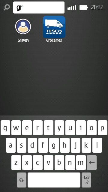Each screen can be renamed, but they start off with default names. When Grid first runs, all the screens are automatically populated. Depending how many applications you have installed, it could take you a while to mentally map out what's where. Given that there are eighteen icons per screen, and nine screens, finding a specific application can be like finding the proverbial needle in a haystack. Fortunately though, along the status bar at the top of the screen, there is a search icon, which you can tap to type in the name of what you're looking for. Typing in search queries is achieved with a bespoke portrait QWERTY keyboard. This same keyboard is used for the aforementioned renaming of screens, which is activated via a long press on each screen name.