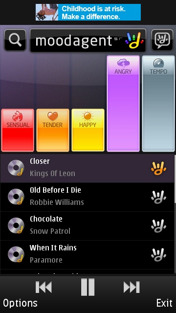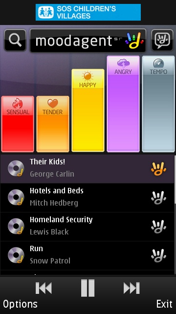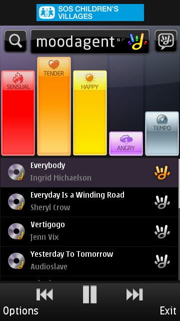 That continuous rewriting of the playlist is a good case of showboating to show how quick MoodAgent is to match tracks. However, I have found that if you adjust the bars too quickly, it can lead to some instability in the application. I'm sure this is a problem the MoodAgent developers will fix in time, although it might have been a safer approach to have an extra on-screen button to trigger compilation of the playlist once the user had settled on what they wanted their mood levels to be.