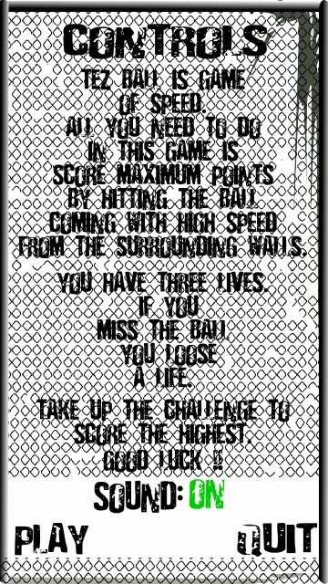 Neither are the graphics perfect. The animation of the ball is not a smooth movement around the screen, it jumps between frames like it’s 1984. The background of the screen, which I think is mimicking the look of a chain link fence, gets in the way of the black text and the bat’n’ball,