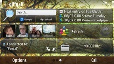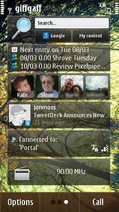 While Android’s UI works on a pixel-for-pixel drag system and has a single wallpaper which sits across all home screens, Symbian^3 is different. In Symbian, you don’t so much drag, as change screens by making a swiping gesture. Then each home screen has an individual wallpaper, which undergoes a fading transition as you move from screen to screen. This ‘hard coded’ transition makes it nigh-on impossible to create a convincing panoramic effect.