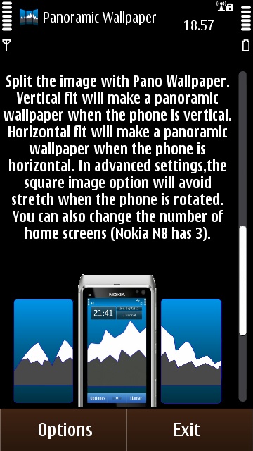 As mentioned above, the modus operandi of Pano Wallpaper is to create a set of wallpapers for Symbian^3’s multiple home screens. Of course, you can do this for yourself with your favourite image editor. However, the benefit of Pano Wallpaper is that it takes all the drudgery out of the task.
