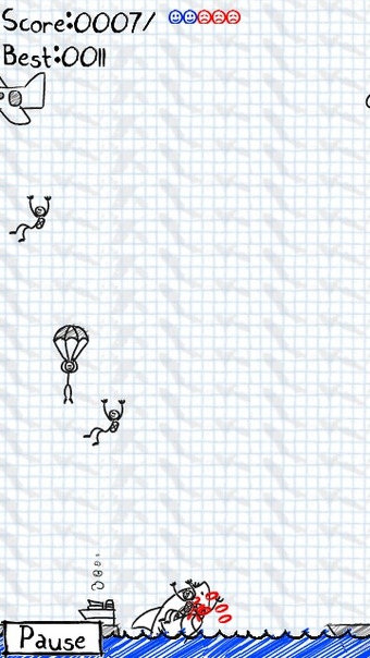 The price of missing the deck is that your stick men meet a watery and bloody end; as a massive sketch of a shark will surface and gobble them up!