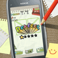 Slice It goes for a very "pencil/art" look, if you can remember cartoons like "Roobarb and Custard" and "Henry's Cat", with its shifting and jumping graphics, that's what you'll get here. It lends an almost 'doodle in a boring school lesson' style to the game, and it works very well. It's all laid on top of graph paper, which has a bonus effect of giving you regular squares under the shape you need to slice - it's not quite a ruler, but it's more than enough to measure out some lengths to help you find the right starting point on one of the shapes.