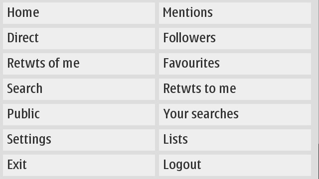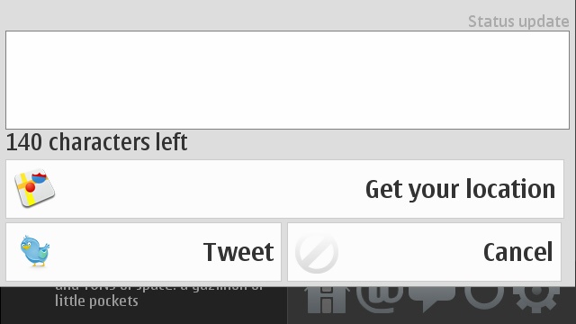 Readers may notice that there are two versions of TwimGo in the Ovi Store. The one reviewed here is the WRT based version. A more advanced Qt version (2.8.3) is also available on the Ovi Store. In testing, I was unable to log in with the Qt version, due to constant OAuth errors. However, you can download the Qt version from its Forum Nokia project page, which I have found to log in successfully, except that it does seem to be hitting constant Twitter API errors, while the WRT version did not. This version has a more advanced UI and addresses some of the criticisms made in this review.